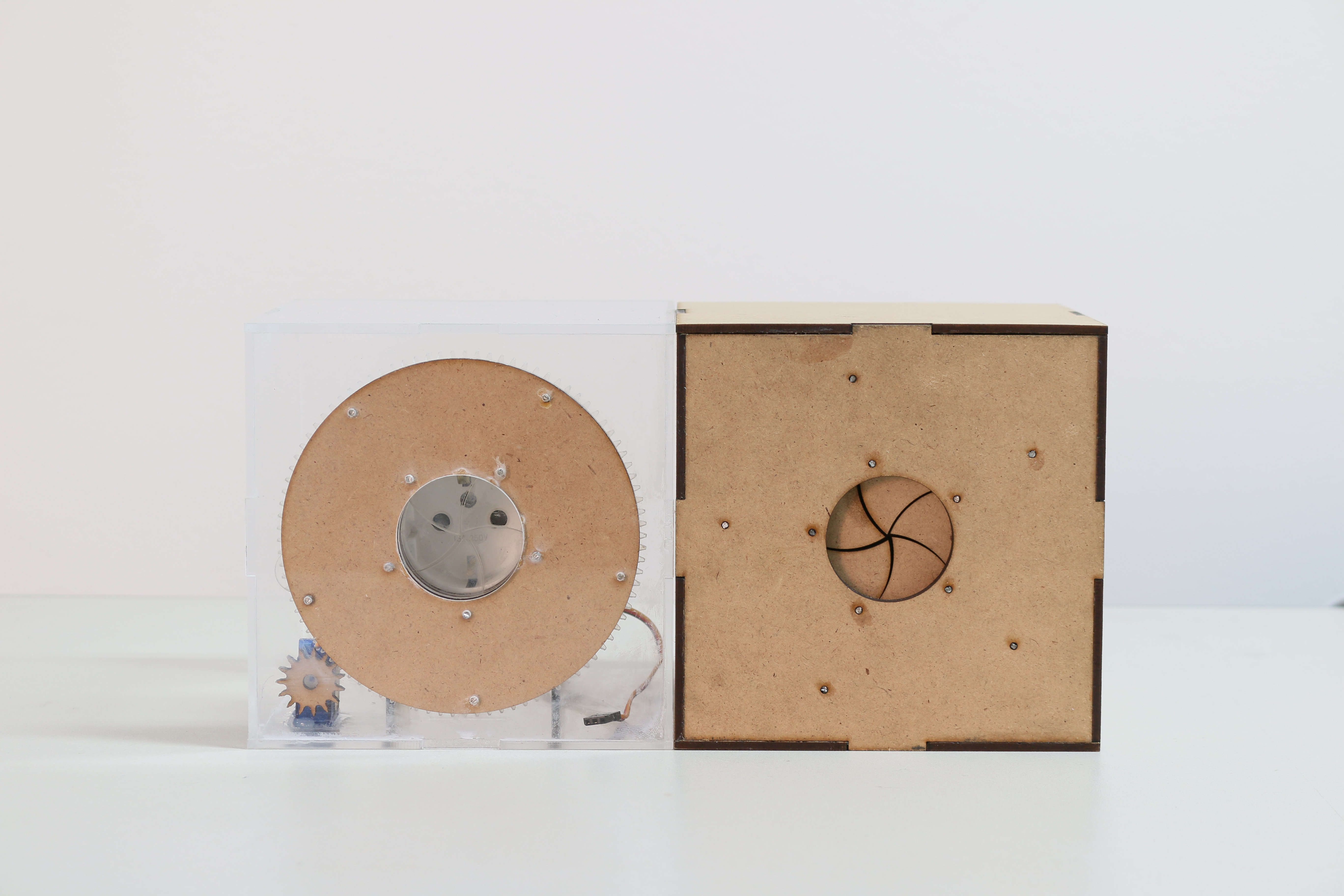 The final experimental prototype was very interesting for me. Because It is first system which is used for making kinetic motion. The word kinetic is only understood in reference to the word kinematic. As originally defined by Andre Ampere in 1830, kinematics is the study of motion unattached to forces or objects and is therefore only consider ideal situations. Kinetics, on the other hand, is concerned with motions resulting from forces directly connected with systems. Alexander Calder’s Untitled mobile built in 1976 is an example of kinetic motion. Kinematics can only be studied in the mind, on paper, or in a digital environment, while kinetics can only be studied in the real world using physical matter acted on by external forces. Kinetics is therefore inherently associated with physical sculpture and a work of sculpture completely realized inside a computer is therefore a kinematic sculpture. The servo was first used in this prototype. It is very useful for kinetic project. It has a very simple motion. So I easily can use it. And I find it about a potential of servo.