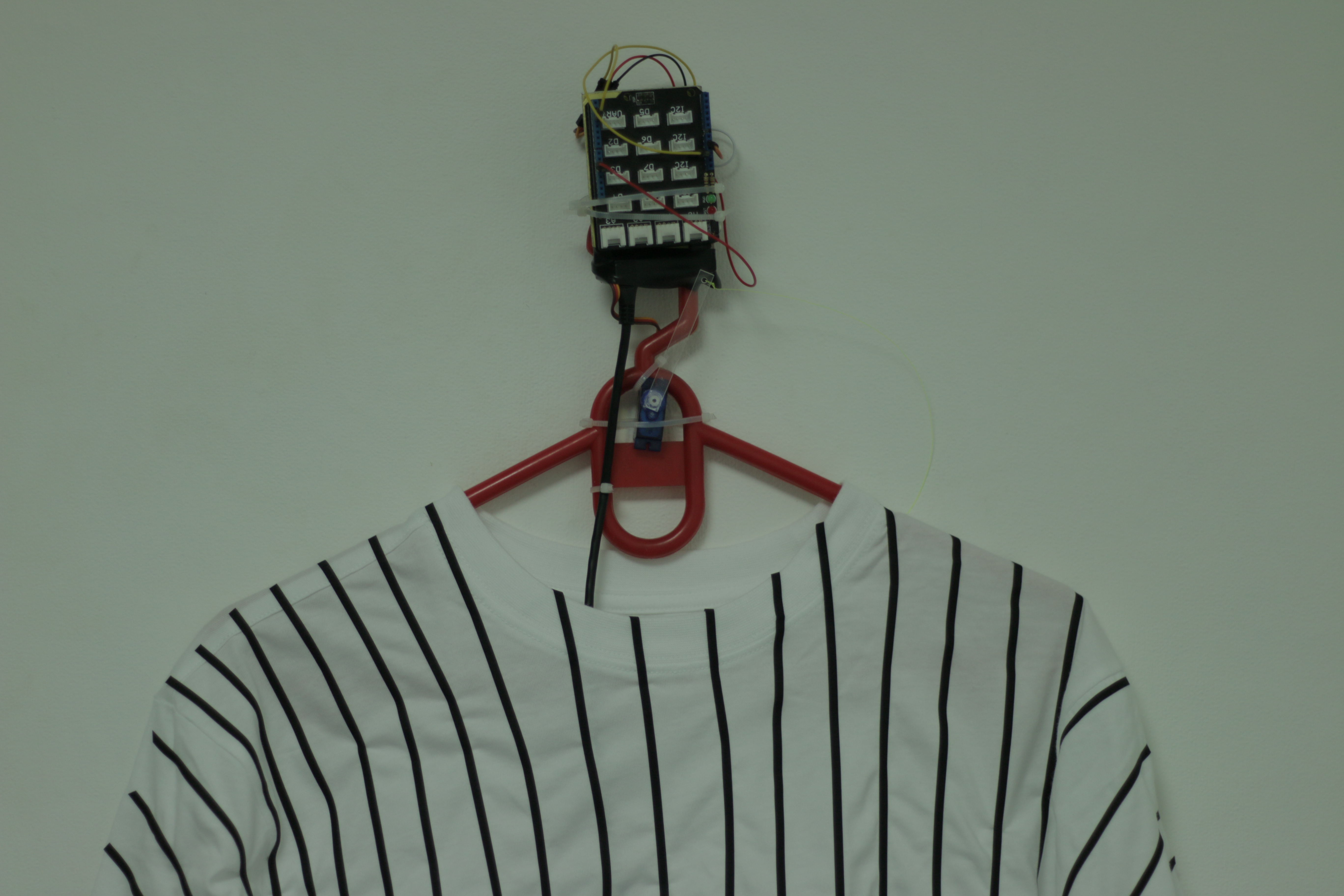 This idea is from Kinect Sculpture. This project is experimental prototype on the kinetic object and extensity of mouse. This shirts works by actuator using a position data of mouse. The signal of mouse into the actuator. So It can move. The servo is similar to controller of puppet. And T-Shirts is kinetic object. This system is simple. It is consist of Arduino and Servo. This system is composed of a source of energy, inputs, outputs, and a control architecture which converts the information from the inputs into information which stimulates the outputs. These elements sum to form the complete object, but other elements may be added to provide mass or form.