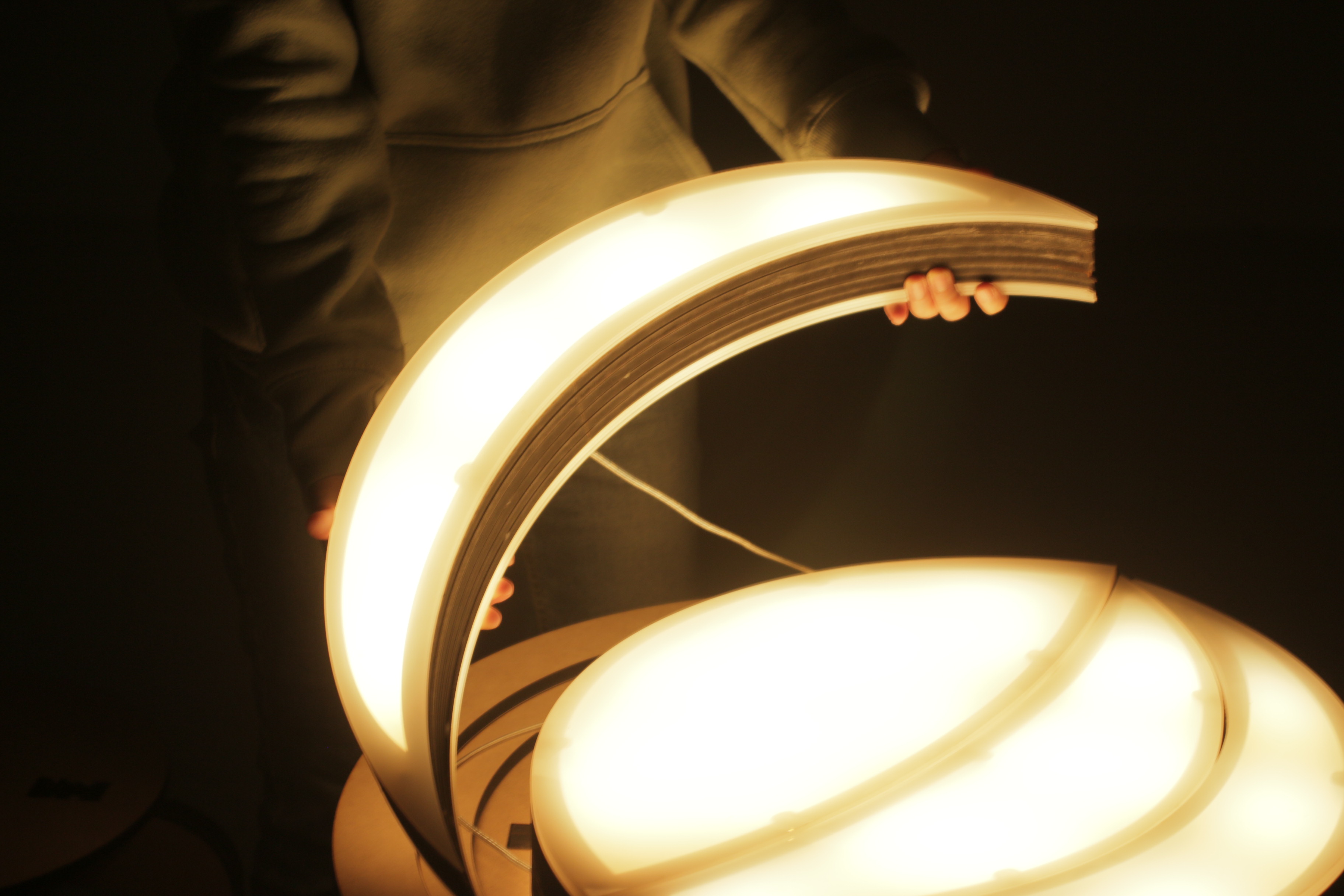 We expressed the meaning of the creation and the destruction in the moon through the shapes of waxing/waning moon and increasing/decreasing sounds depending on the number of people. The core message of this project is to give philosophical questions about doing things